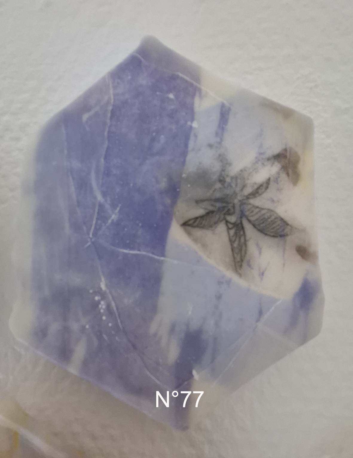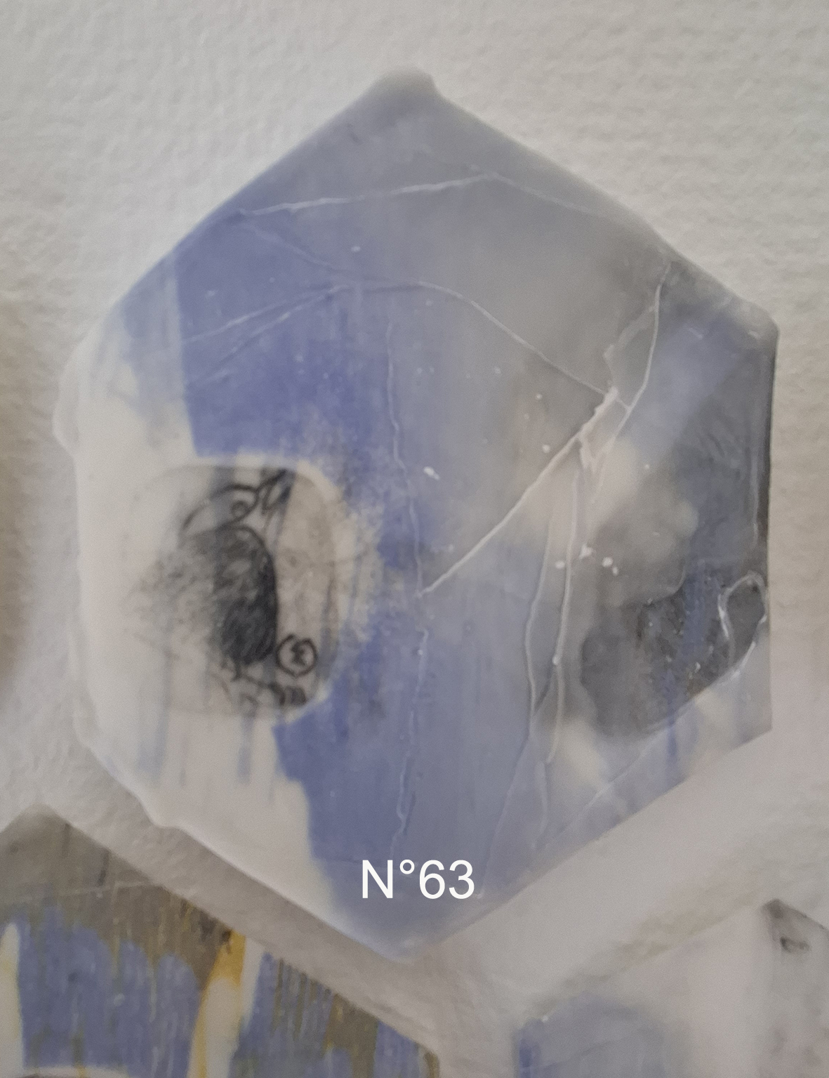 Chaque forme est indépendante, chacune porte un témoignage géographique où les couleurs emprisonnées dans la cire se dégradent progressivement vers le blanc et deviennent des souvenirs flous.